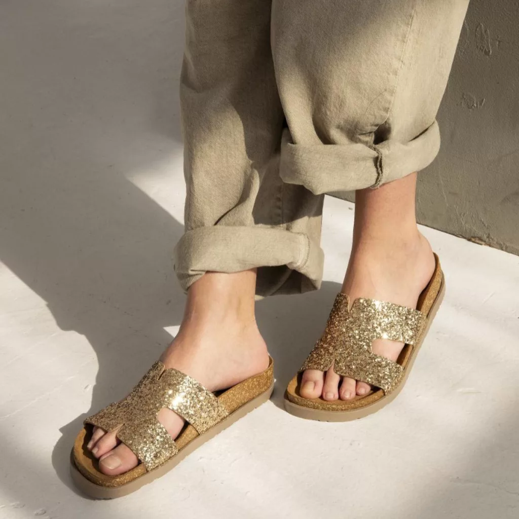 A talp anatómiai kialakítású parafa, puha velúrbőr talpbetéttel és habszivacs alsó résszel. Ajánlott mindennapos otthoni vagy utcai használatra, hosszú sétákra.
