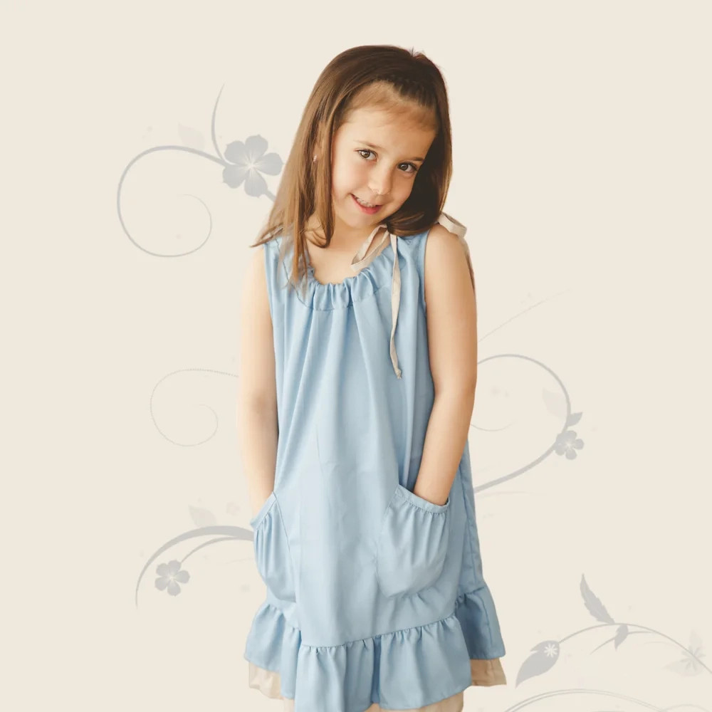 Az elülső zsebes és húzott, dupla aljú, világos farmerkék színben pompázó kislány ruhánk, tökéletesen megtestesíti a gyermeki vidámságot. 90% pamut és 10% viszkóz anyagból készült, melynek köszönhetően egész nap kényelmes és hűs viseletet biztosít - még akkor is, ha gyermeked a nap legmelegebb óráiban játszik a szabadban. Az elkészítéséhez használt anyagok puhasága és légáteresztő képessége garantálja, hogy kislányod a legaktívabb napokon is komfortosan érezze magát. A húzott, dupla alj játékosan bájos, mégis elegáns, és pont elegendő mozgásteret biztosít ahhoz, hogy viselője szabadon futkározhasson, ugrálhasson, és ami a legfontosabb, hogy igazán gyermek lehessen benne.