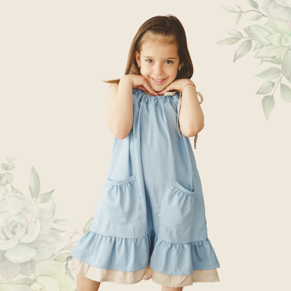 Az elülső zsebes és húzott, dupla aljú, világos farmerkék színben pompázó kislány ruhánk, tökéletesen megtestesíti a gyermeki vidámságot. 90% pamut és 10% viszkóz anyagból készült, melynek köszönhetően egész nap kényelmes és hűs viseletet biztosít - még akkor is, ha gyermeked a nap legmelegebb óráiban játszik a szabadban. Az elkészítéséhez használt anyagok puhasága és légáteresztő képessége garantálja, hogy kislányod a legaktívabb napokon is komfortosan érezze magát. A húzott, dupla alj játékosan bájos, mégis elegáns, és pont elegendő mozgásteret biztosít ahhoz, hogy viselője szabadon futkározhasson, ugrálhasson, és ami a legfontosabb, hogy igazán gyermek lehessen benne.