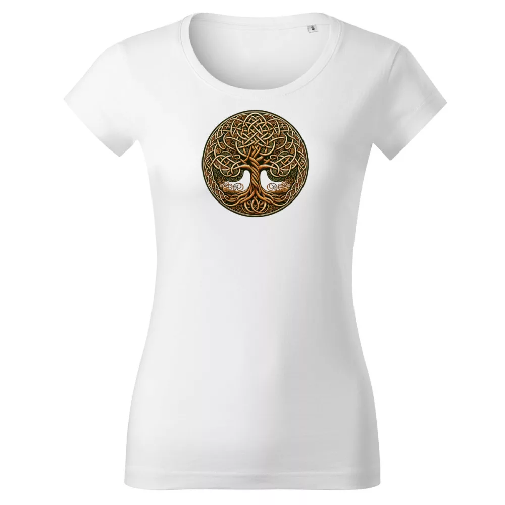Egyedi dizájnnal ellátott minőségi női karcsúsított póló. A póló íves szabású, oldalvarrással van ellátva. A nyakkivágás saját anyagával van szegélyezve. A vállpánt megerősített, az ujjak rövidítettek.  Az alapanyag szilikonos kezelésen ment keresztül, így extra kényelemmel, puhasággal és bőrbarát funkcióval rendelkezik.